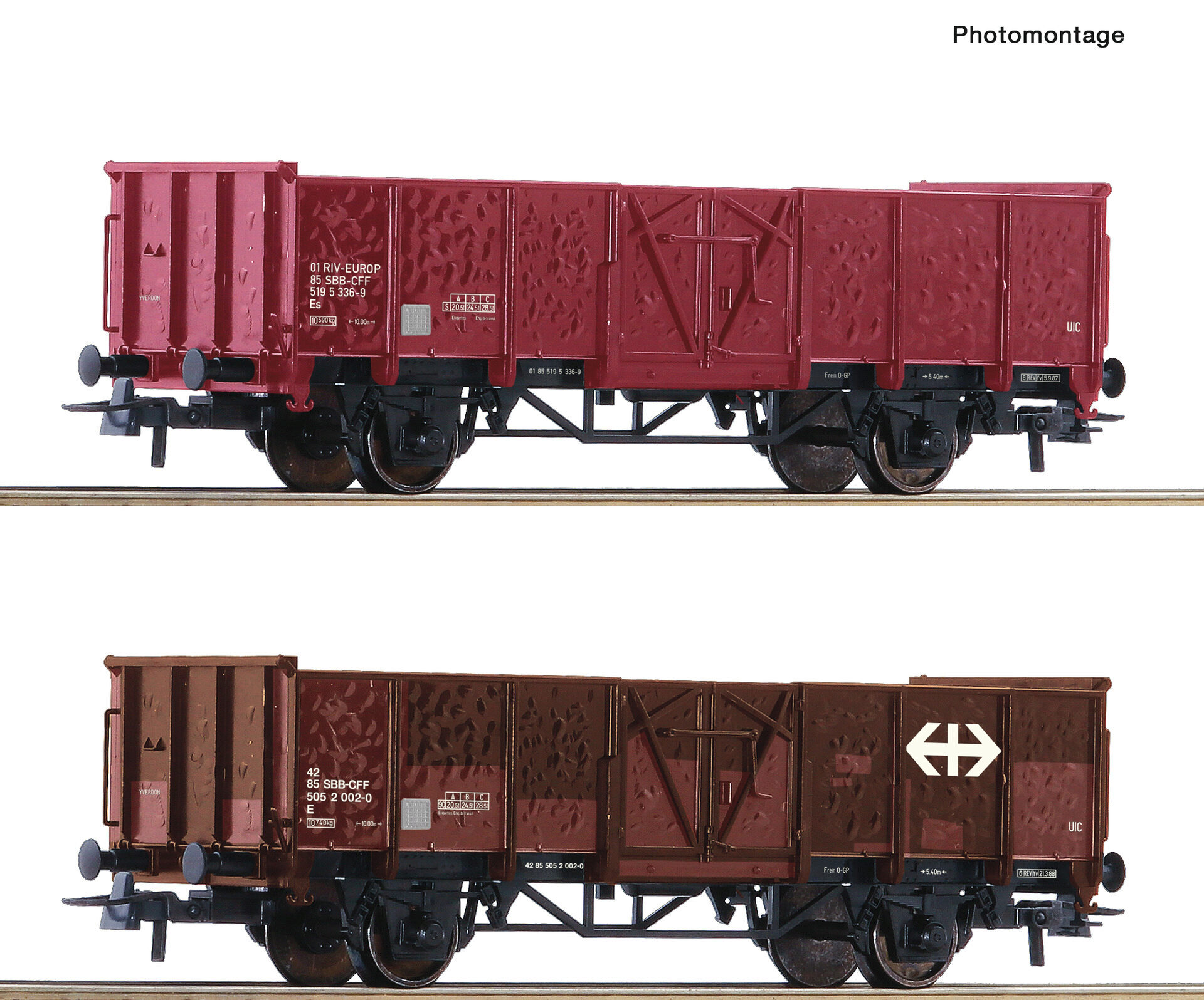 Wagenset mit zwei 2-achsigen offenen Güterwagen Bauart L7 der Schweizerischen Bundesbahnen.