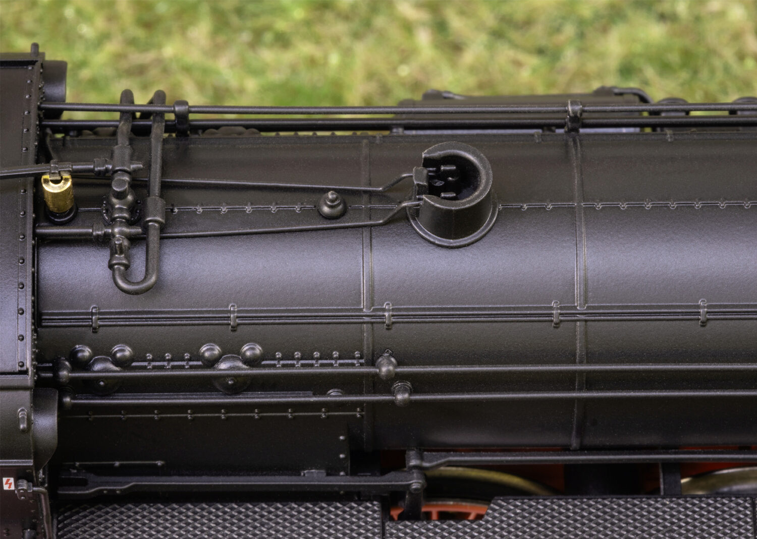 Ein eingebauter Pufferspeicher verbessert das Fahrverhalten. Schwenkbare Führerstandstüren und eine Nachbildung der Vorhänge zwischen Führerstand und Tender sorgen für zusätzliche Detailtreue. Zwischen Lok und Tender ist eine Kurzkupplung mit Kinematik vorhanden; am Tender befindet sich eine kinematikgeführte Kurzkupplung mit NEM-Schacht. Die Pufferhöhe von Lok und Tender entspricht der NEM-Norm.