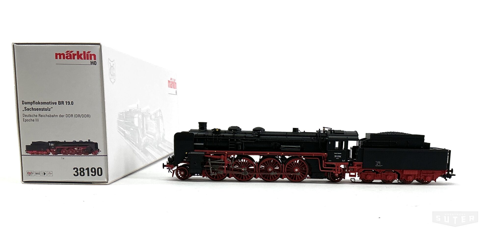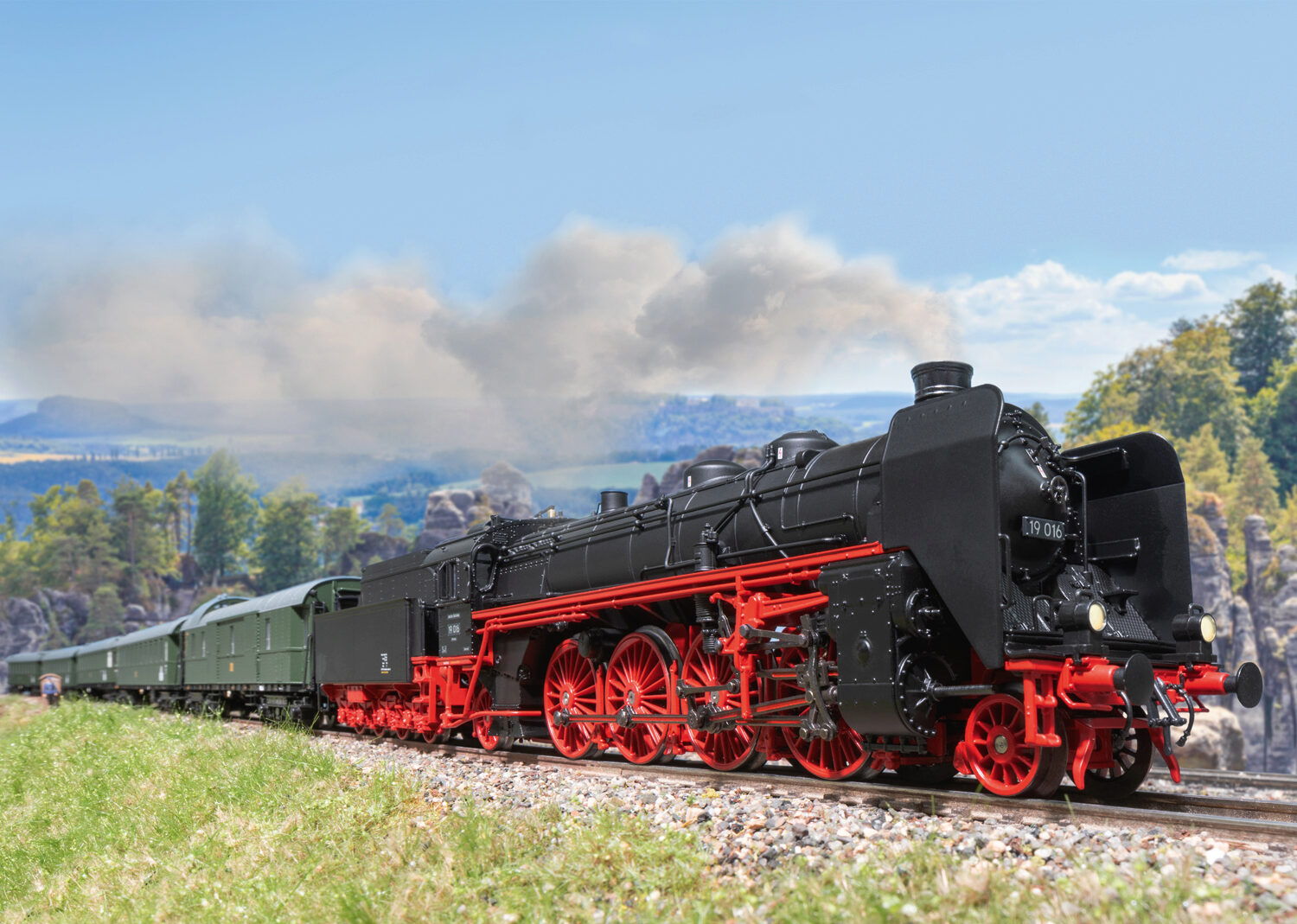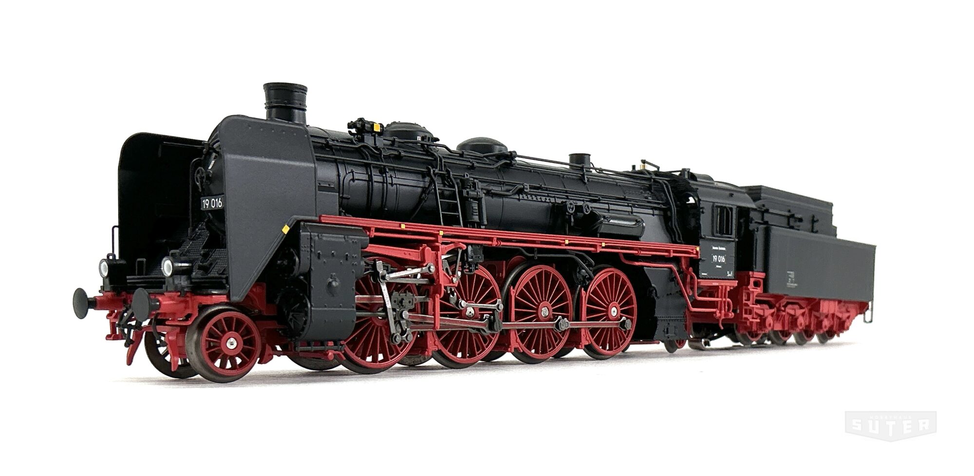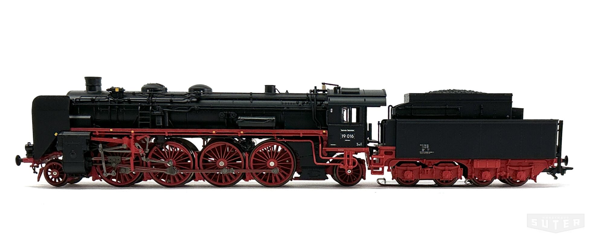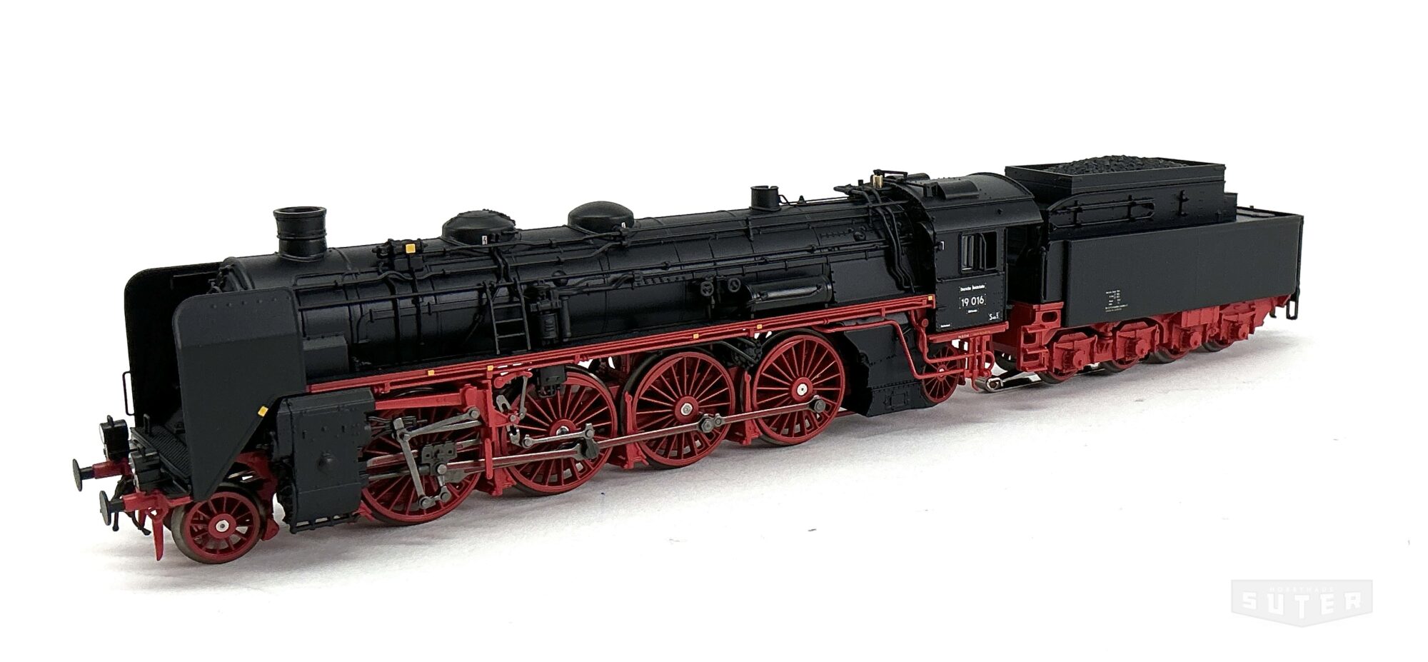 Vorbild: Schnellzug-Dampflokomotive der Baureihe 19.0, auch bekannt als „Sachsenstolz“ (ehemals sächsische Gattung XX HV), mit einem sächsischen Kohlen-Schlepptender der Bauart 2′2 T 31. Eingesetzt bei der Deutschen Reichsbahn der DDR (DR/DDR). Dargestellt im Betriebszustand der Epoche IIIa, Anfang der 1950er-Jahre.