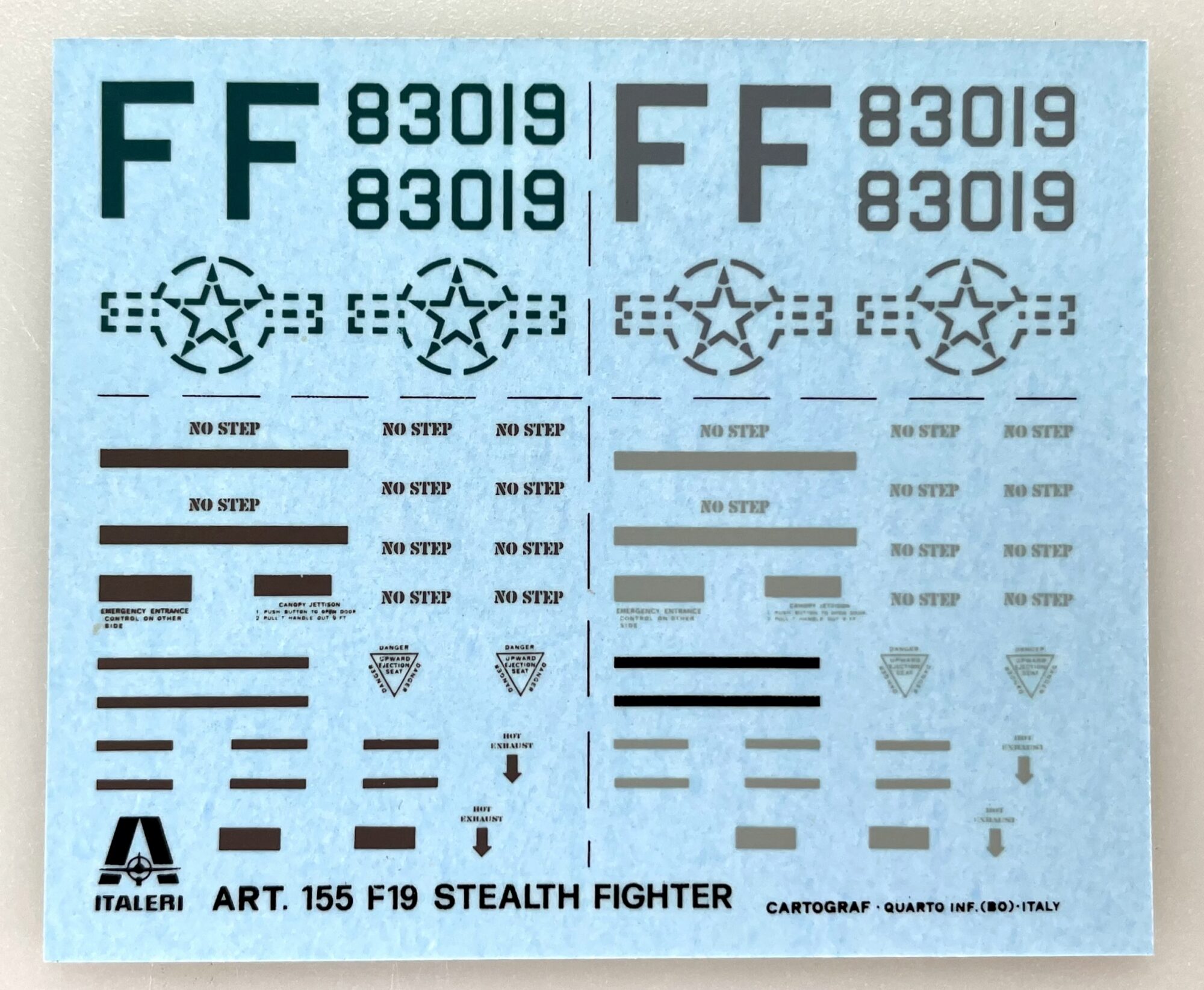 *Decalbogen 1:72 Flugzeug F-19 Stealth 5.5 x 6.5cm