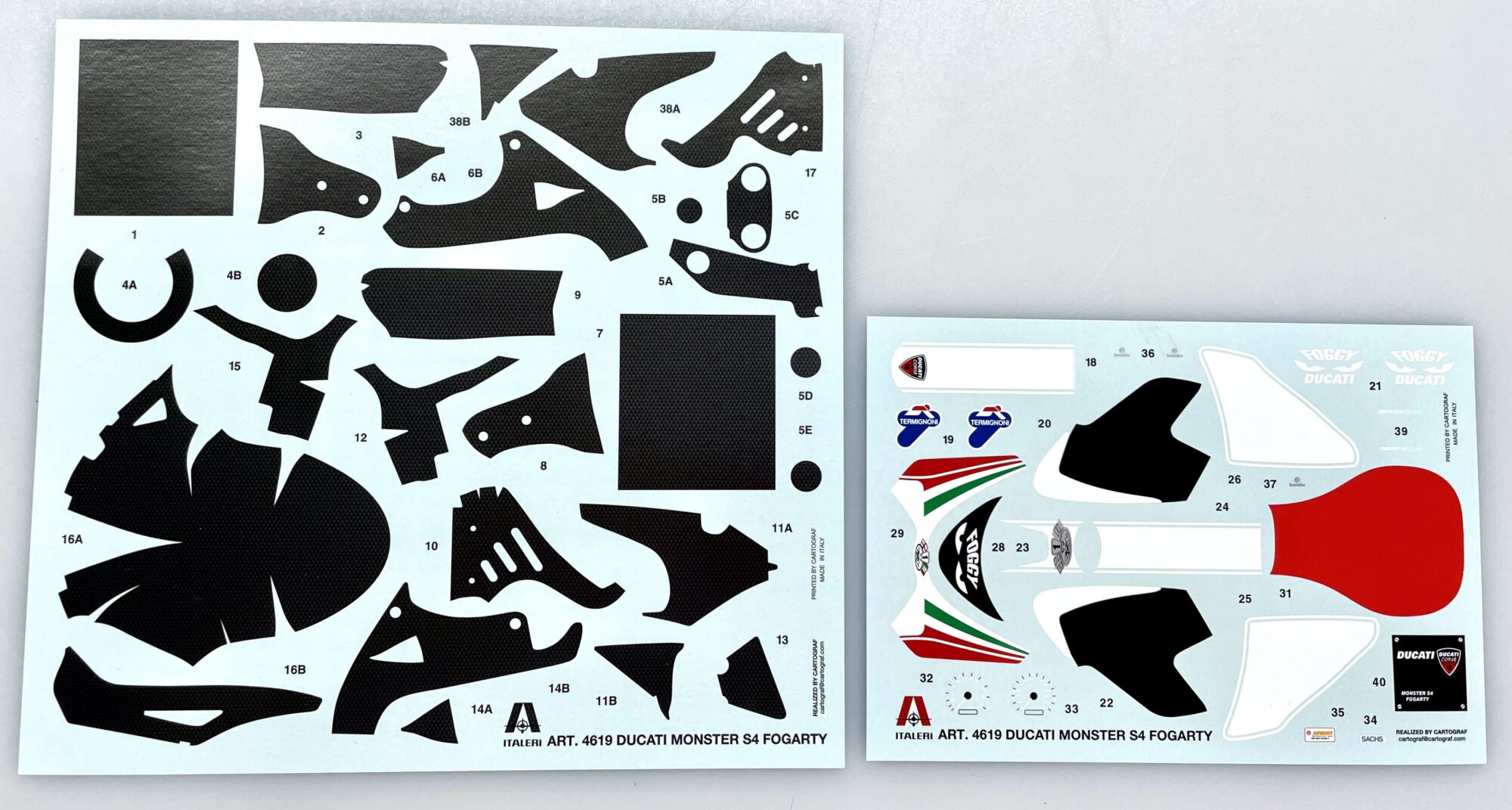 *Decalbogen 1:9 Motorrad Ducati Monster S4 Fogarty 15.5x16.5 + 9x13cm