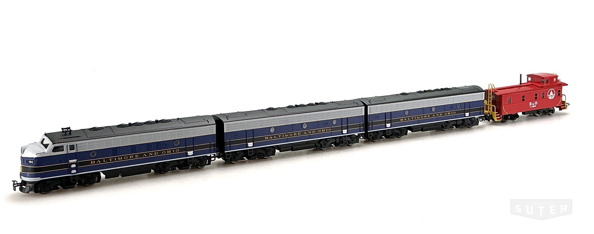 *US Diesel-Elektrische Lok EMD 3-fach F7 Baltimore ans Ohio mit Caboose digital mfx +sound