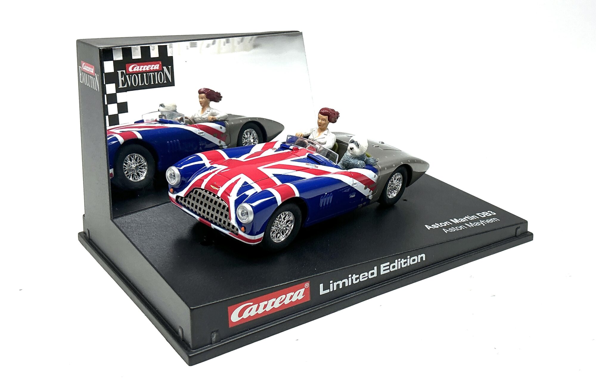 *Aston Martin DB 3 Mayhem LIMITED blau / rot mit Hund 1:32 anderes Bild ohne Schraube
