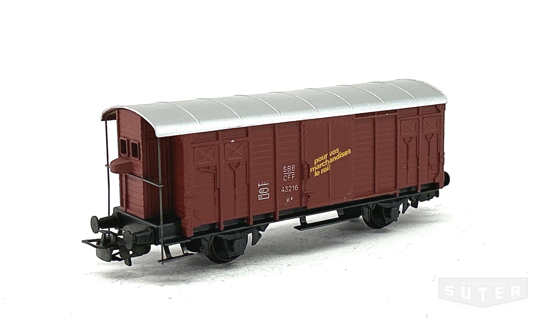 *SBB ged. Güterwagen K3 mit Bremserhaus Guss braun "Für Güter die Bahn"