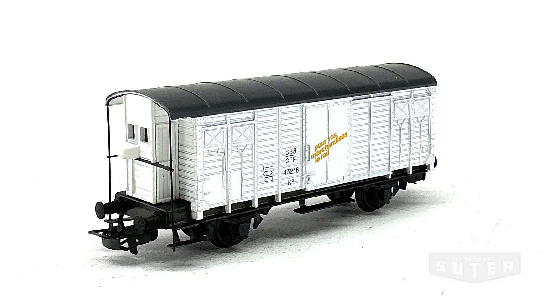 *SBB ged. Güterwagen K3 mit Bremserhaus Guss weiss "Für Güter die Bahn"