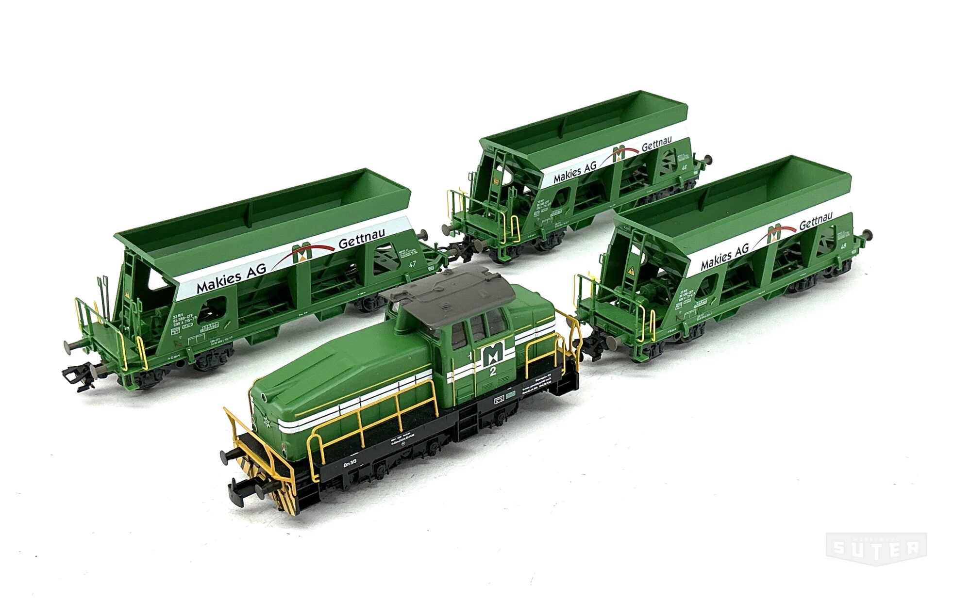 *Kieszug MAKIES AG Gettnau grün, 1 Diesellok und 3 Kieswagen digital